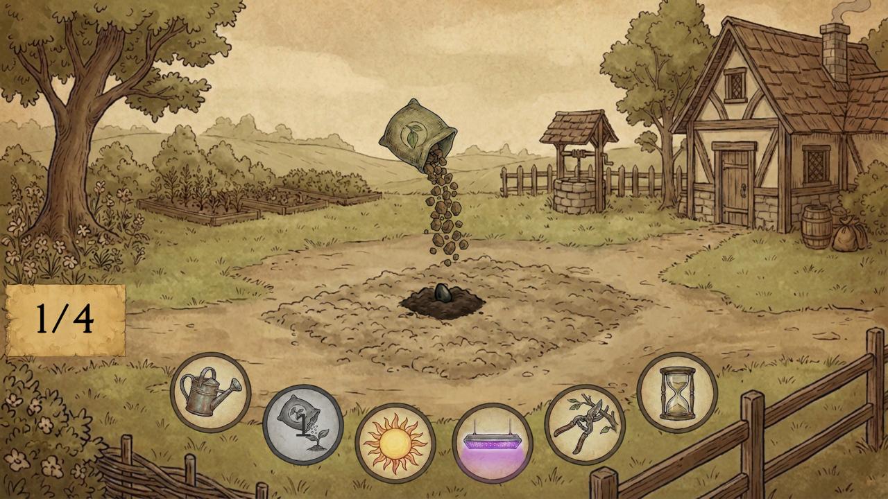 You are a gardener-collector dreaming of growing perfect fruits in your experimental garden. Armed with patience and curiosity, you explore the mysterious properties of plants by trying various care combinations.